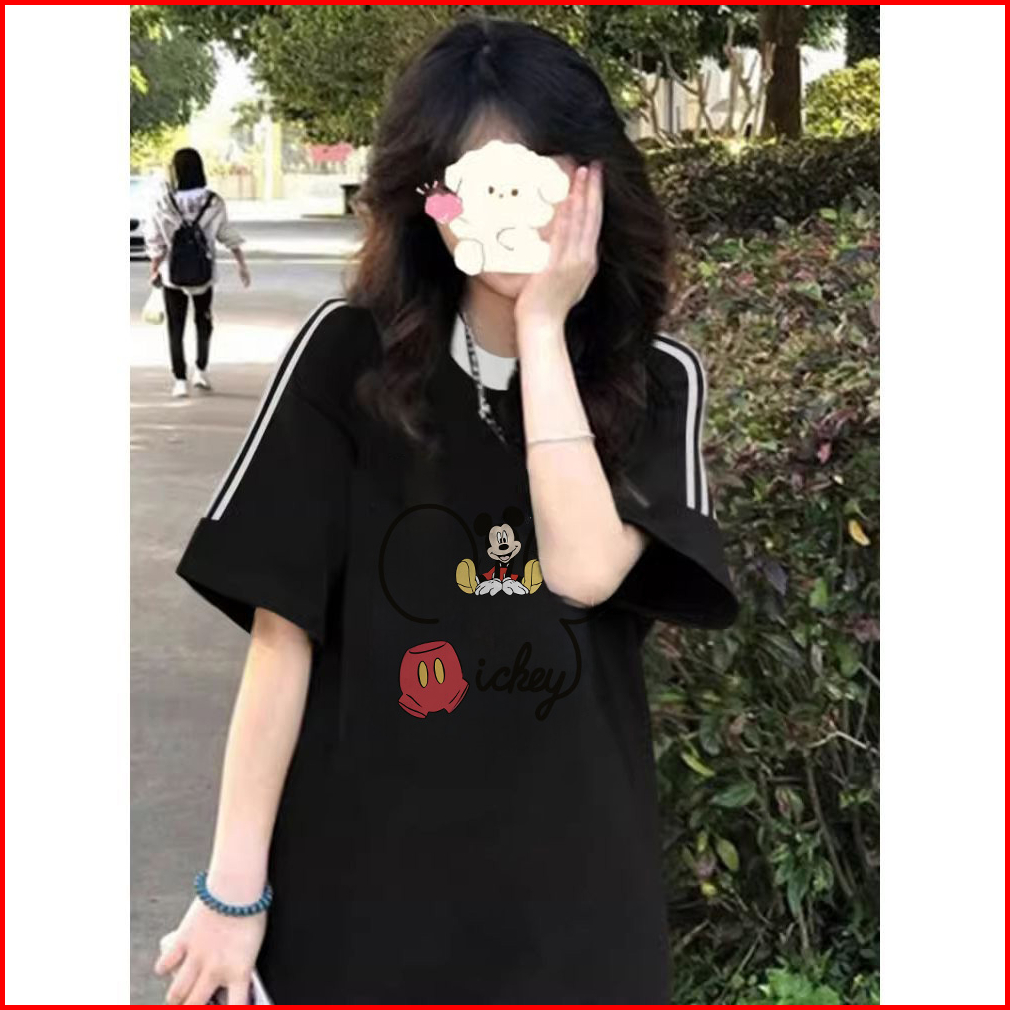 Xzhainv Kaos Lengan Pendek Cetak Mickey Mouse Wanita Korea Pakaian Wanita Lengan Pendek Putih Versi Korea Dari Tiga Gari