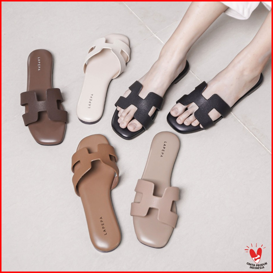Lapepa Yuk - Orlin Sandal Wanita Teplek Korea Casual Premium Size 36 - 41 Sendal Slop Empuk Flat Cewek Kasual Rumahan