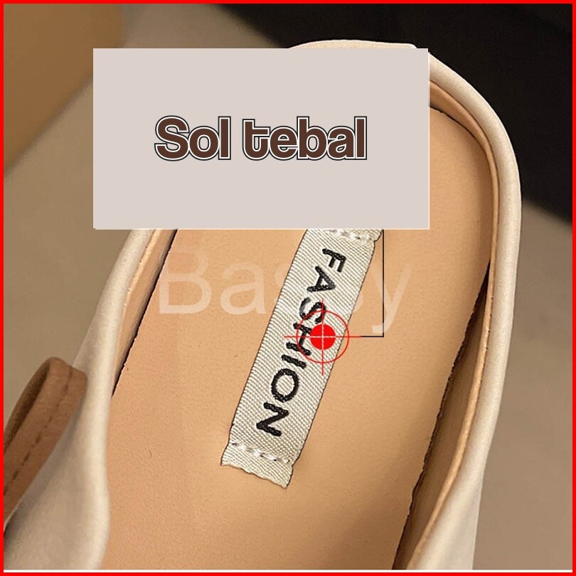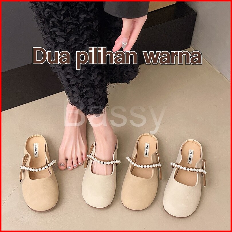 Bassy Slip On Wanita Terbaru Sandal Selop Strap Mutiara Senda Flat Karet Wanita Hsn570