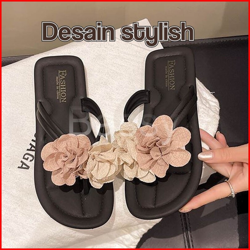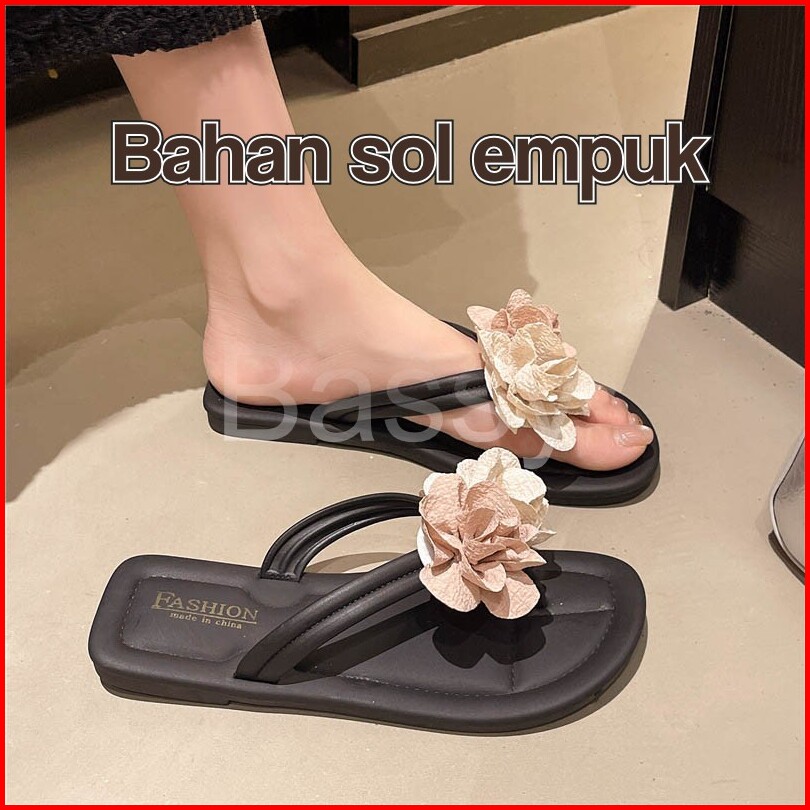 Bassy Sendal Jepit Wanita Sandal Rumah Flat Ringan Sandal Bunga Anti Slip Hsn572