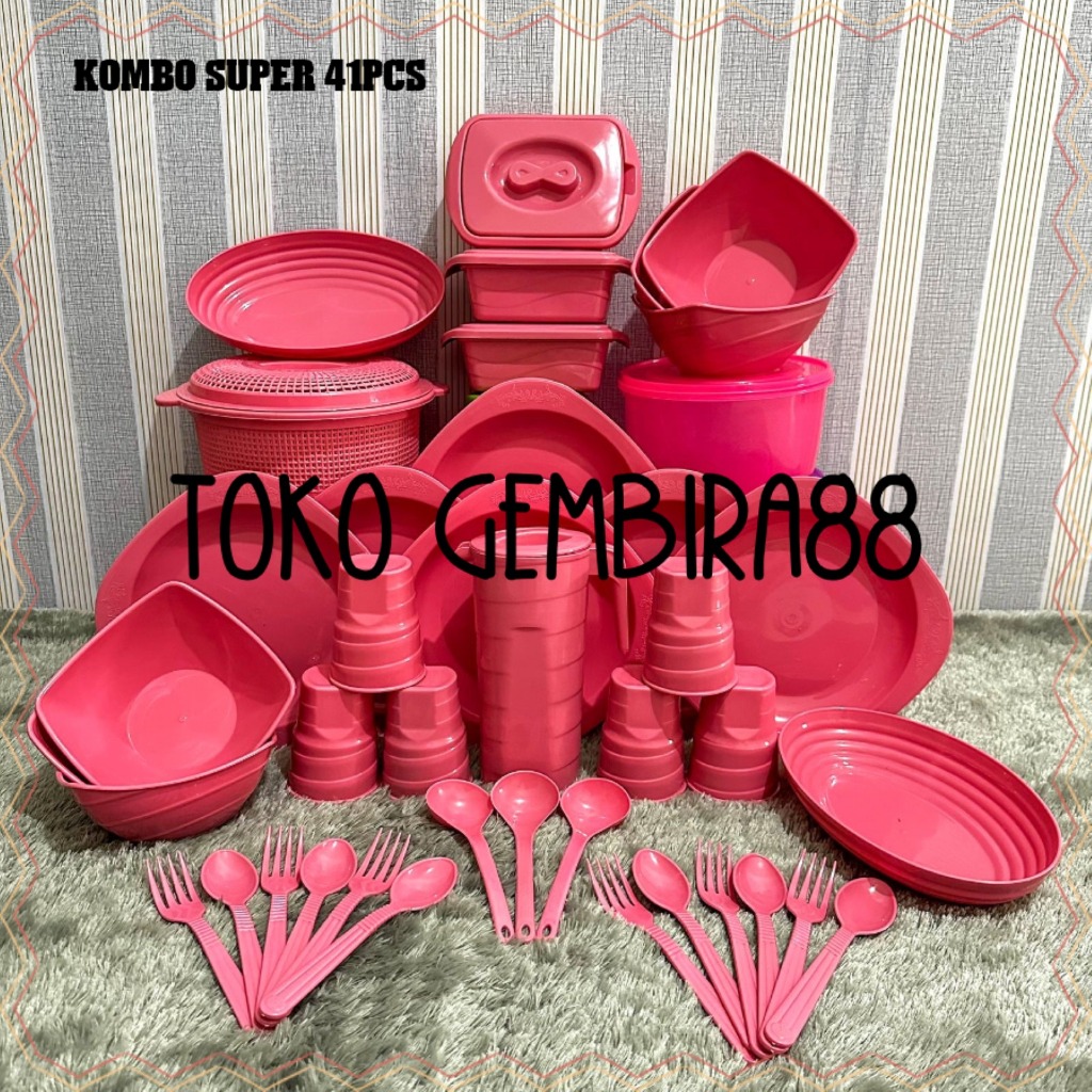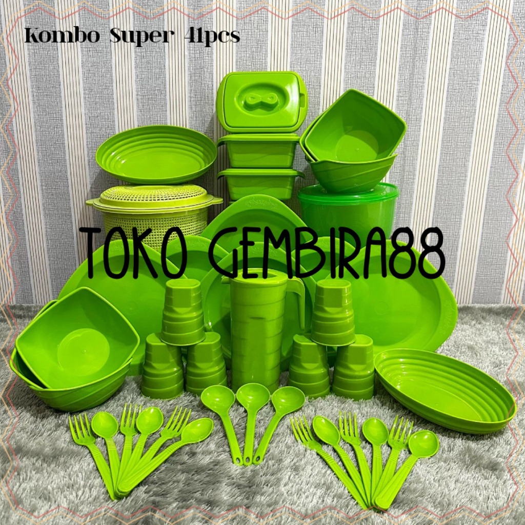 Set Kombo Super 41pcs / Piring segi / Mangkok Segi / Gelas Ulir 450ml / Piring Sayur / Wakul / Teko Coolpot 1,3L / Box s