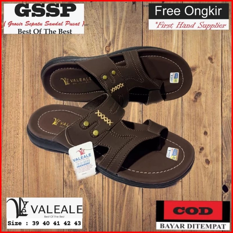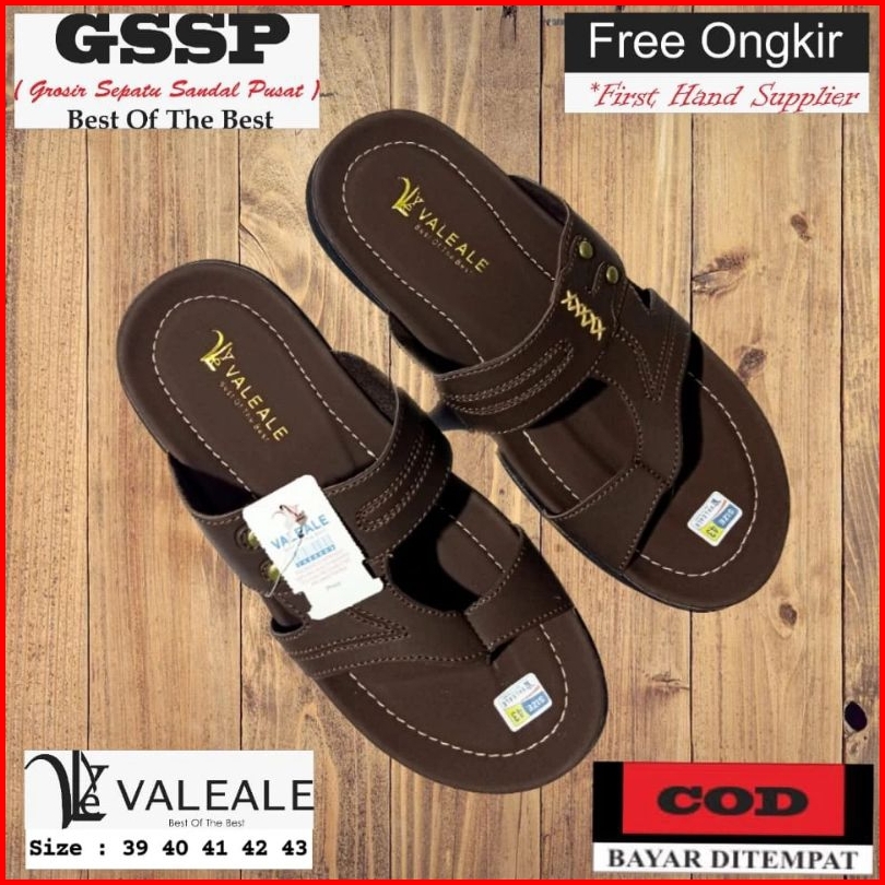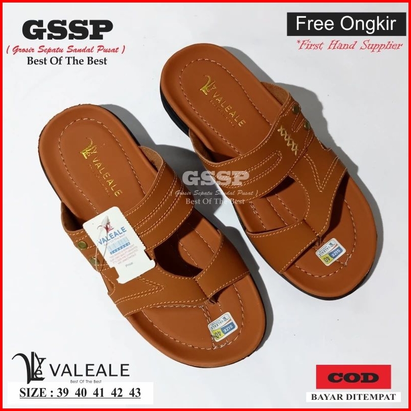 Sandal Slop Kulit Sendal Japit Kulit Pria Vj 03 Valeale Non Slip Keren Nyaman Di Pakai Size 38-43