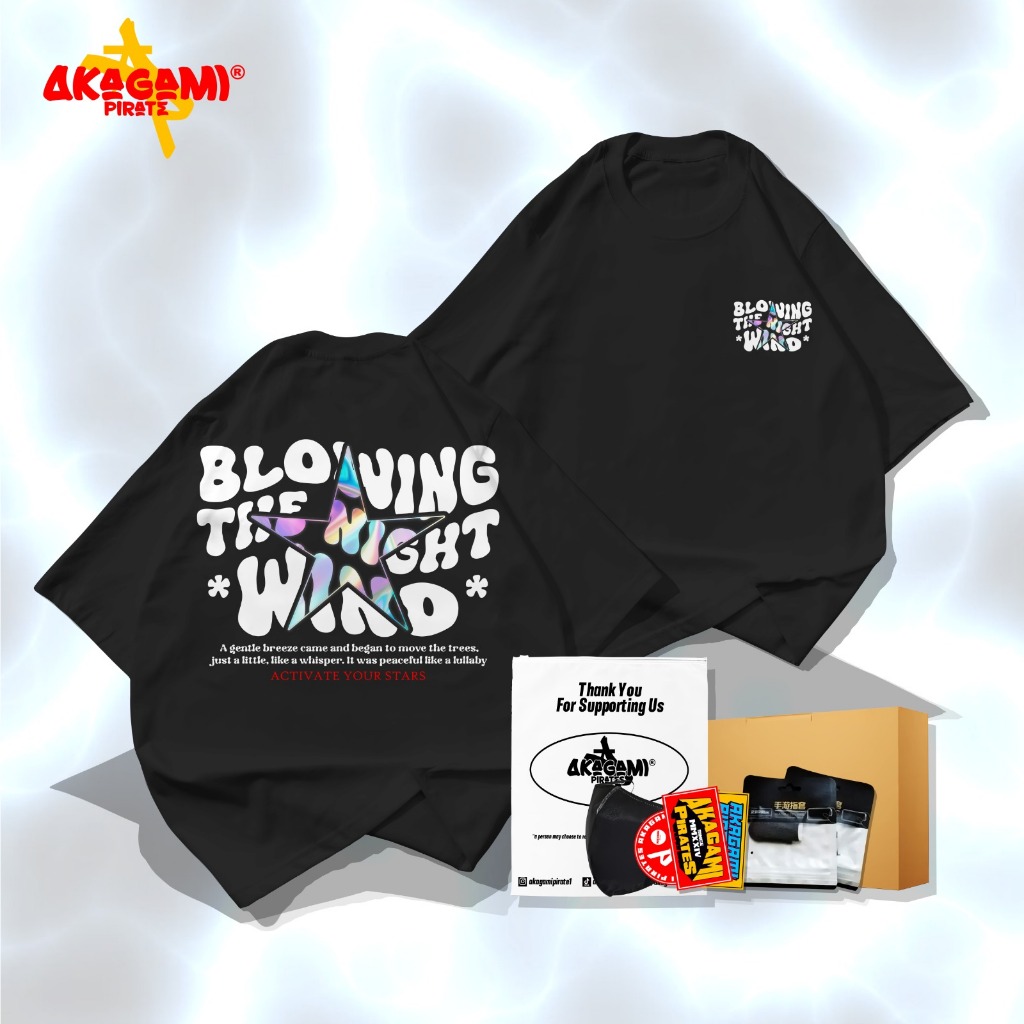 [Mall] AKAGAMI Kaos Menyala Reflective Rainbow BLOWING THE NIGHT WIND OVERSIZE Unisex Pria Wanita T-shirt Baju