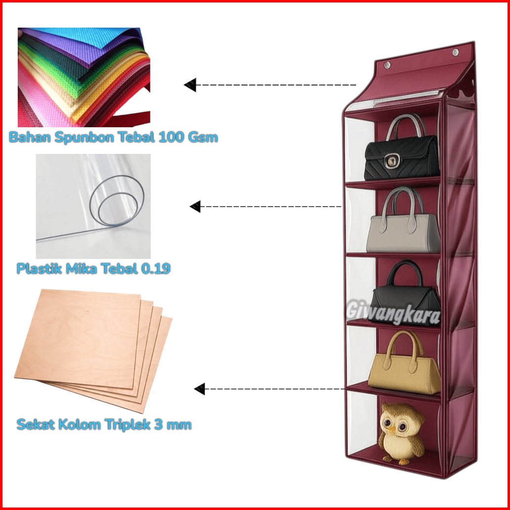 Rak Tas Gantung 6 Susun Ukuran Jumbo Modern Bahan Premium Full Resleting Anti Debu Dan Jamur