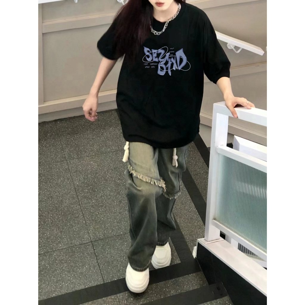 [Mall] Po floret t shirt oversize lengan pendek Kaos letters katun murni simple style wanita top
