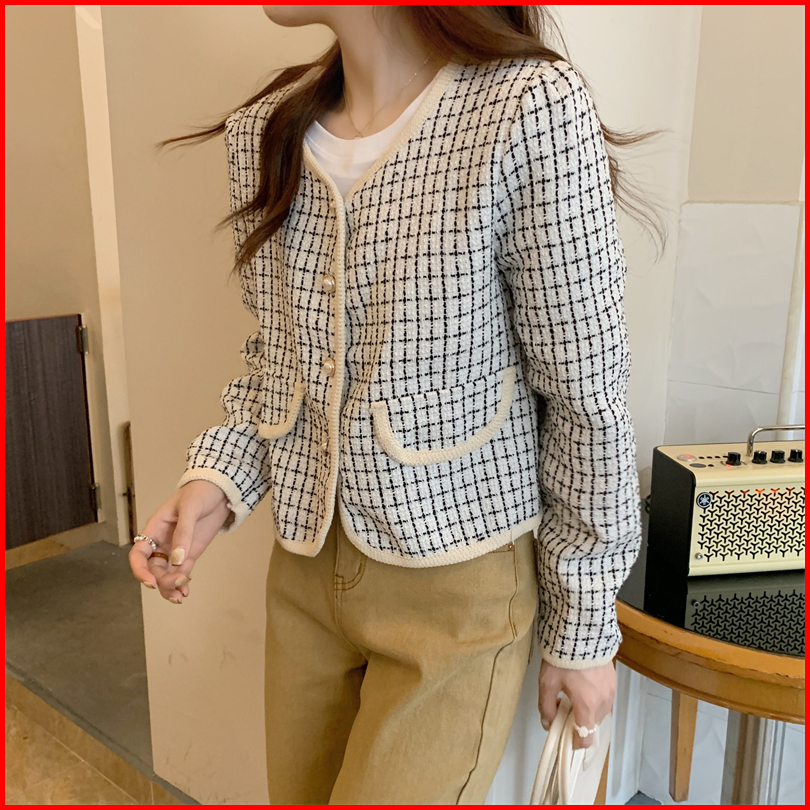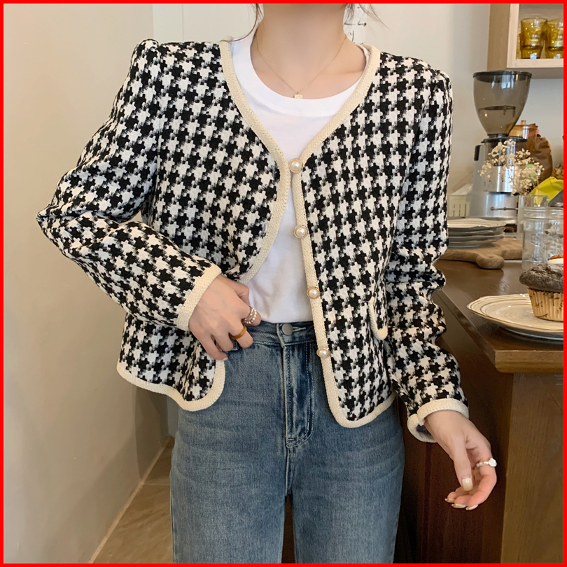 The Monseur Gallery Jaket Crop Wanita Terbaru Korean Style Plaid Jacket