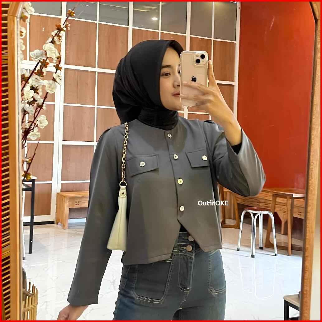 Blazer Crop Wanita - Elena Outer Basic Wanita Luaran Top - Atasan Wanita Basic Lengan Panjang