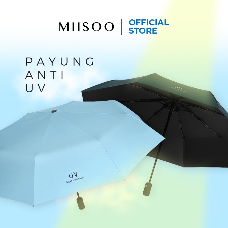 MIISOO Payung Anti Uv Korea style Anti Panas Ultra violet Anti Hujan Payung Lipat Otomatis Anti Sinar UV Protection motif polos Bulu-live