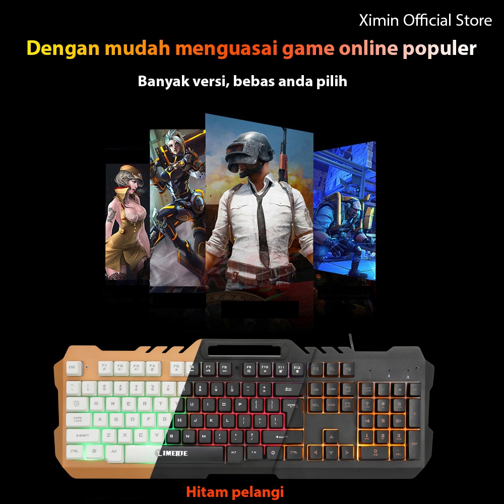 [Mall] Kombo Keyboard Gaming K21 dari Koneksi USB Kabel Panel Logam Sensasi Mekanis Tahan Lama Desain Premium dengan Lampu LED Warna-Warni