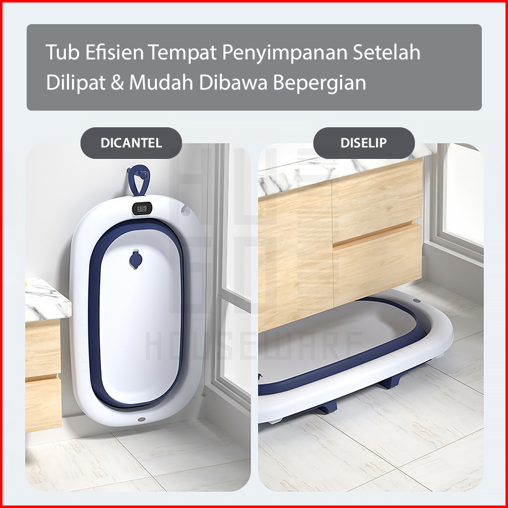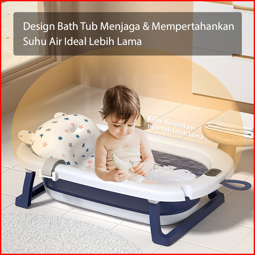 Hugo Foldable Baby Bath Tub Bak Mandi Bayi Lipat Dengan Pengukur Suhu Dan Bantal Mandi Tempat Mandi Bayi Portable