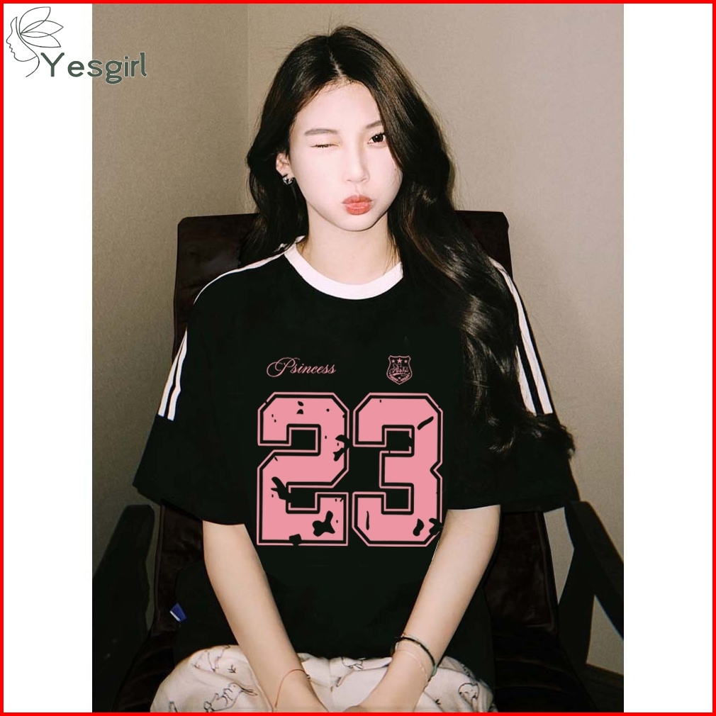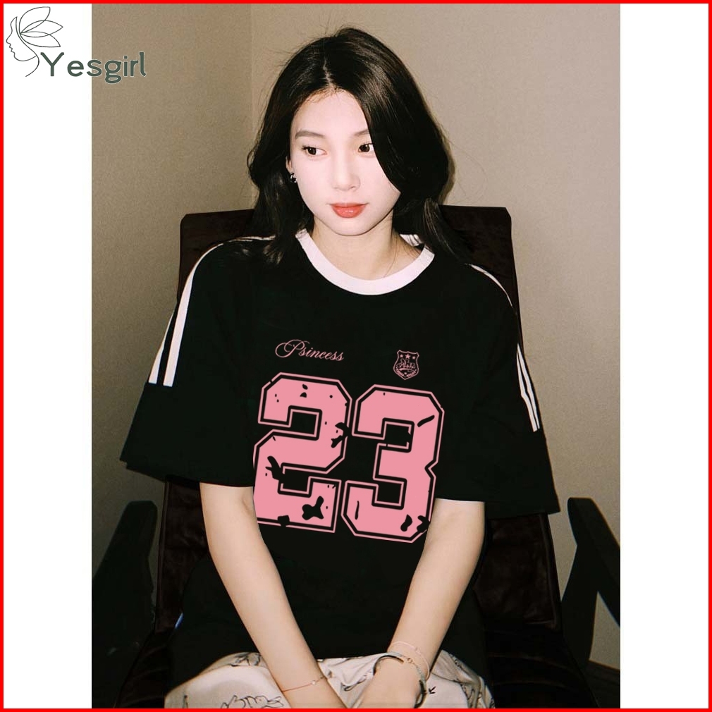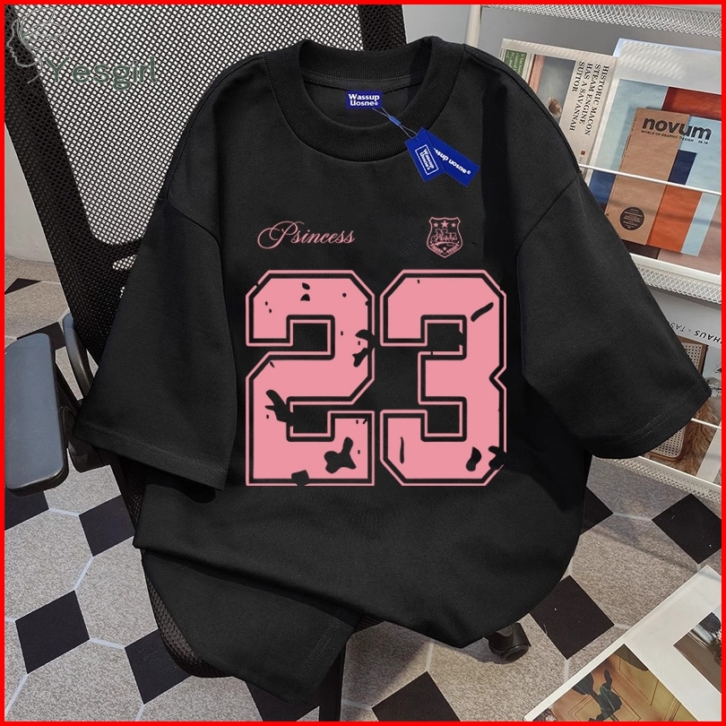 Yesgirl Baju Wanita Hitam White Kaos Premium Lengan Pendek Oversize Kaos Motif Nomor Merah Muda 23 Atasan Wanita Kekinia