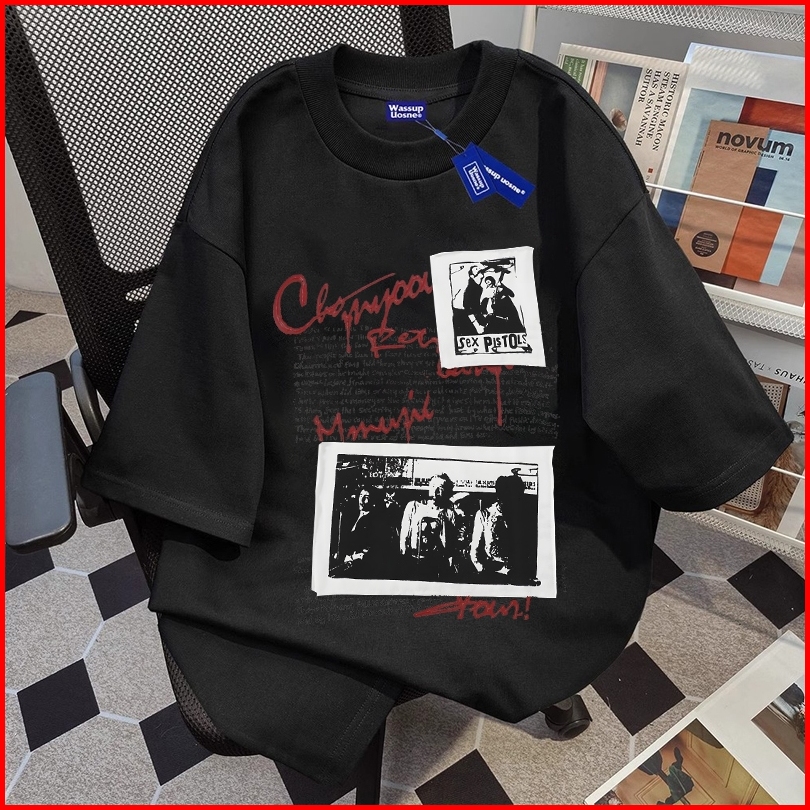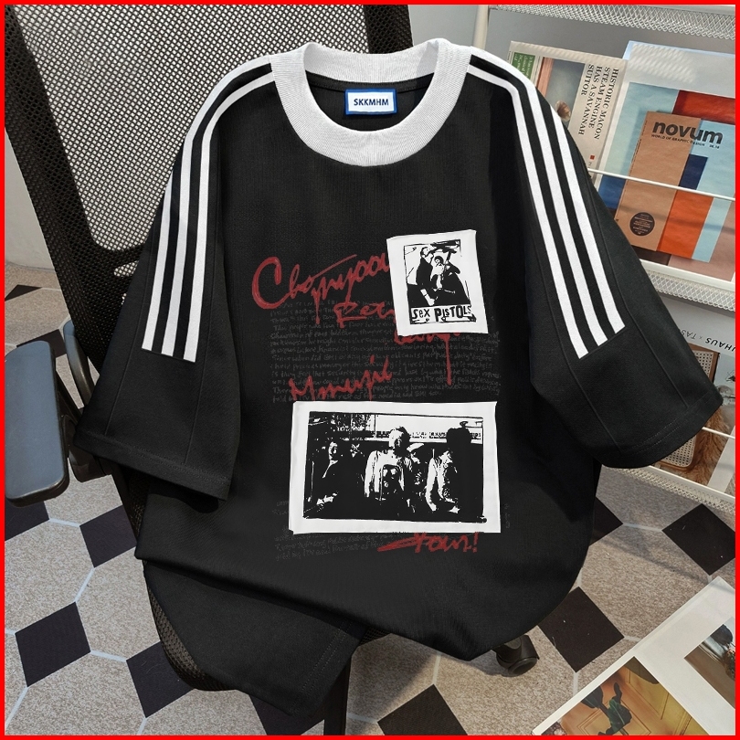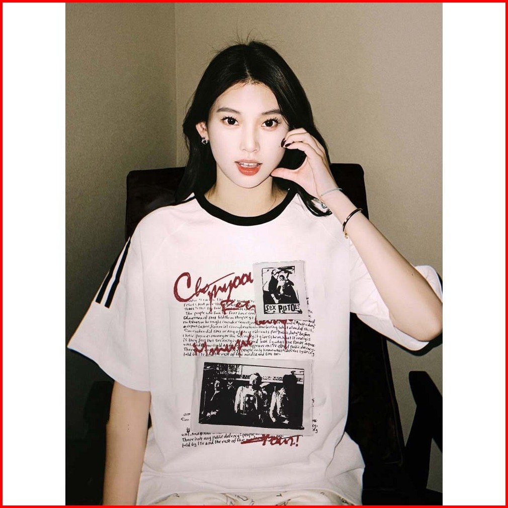 Boombap American Retro Style Tiga Bar T-shirt Oversize Newspaper Reports Print Top Kaos Wanita Putih Kaos Pria Dan Wanit