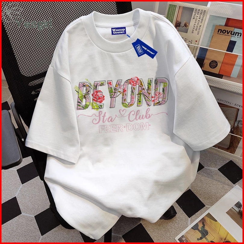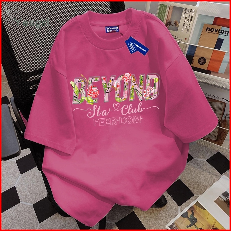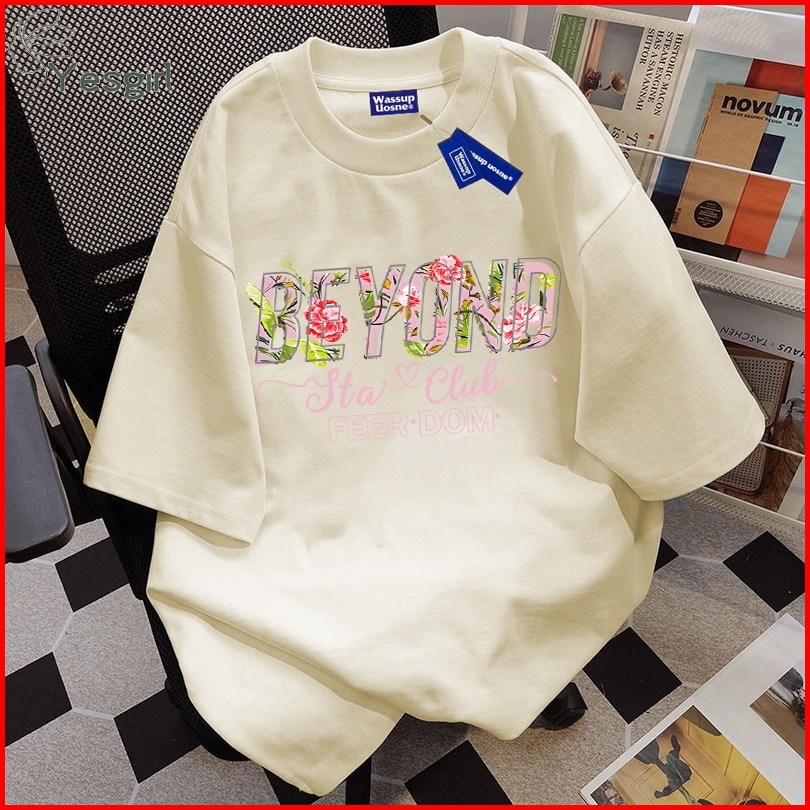 Yesgirl Korea Style Beyond Flower Print Kaos Kasual Longgar Kaos Oversize Wanita Fashion Korean Style Baju Kaos Oversize