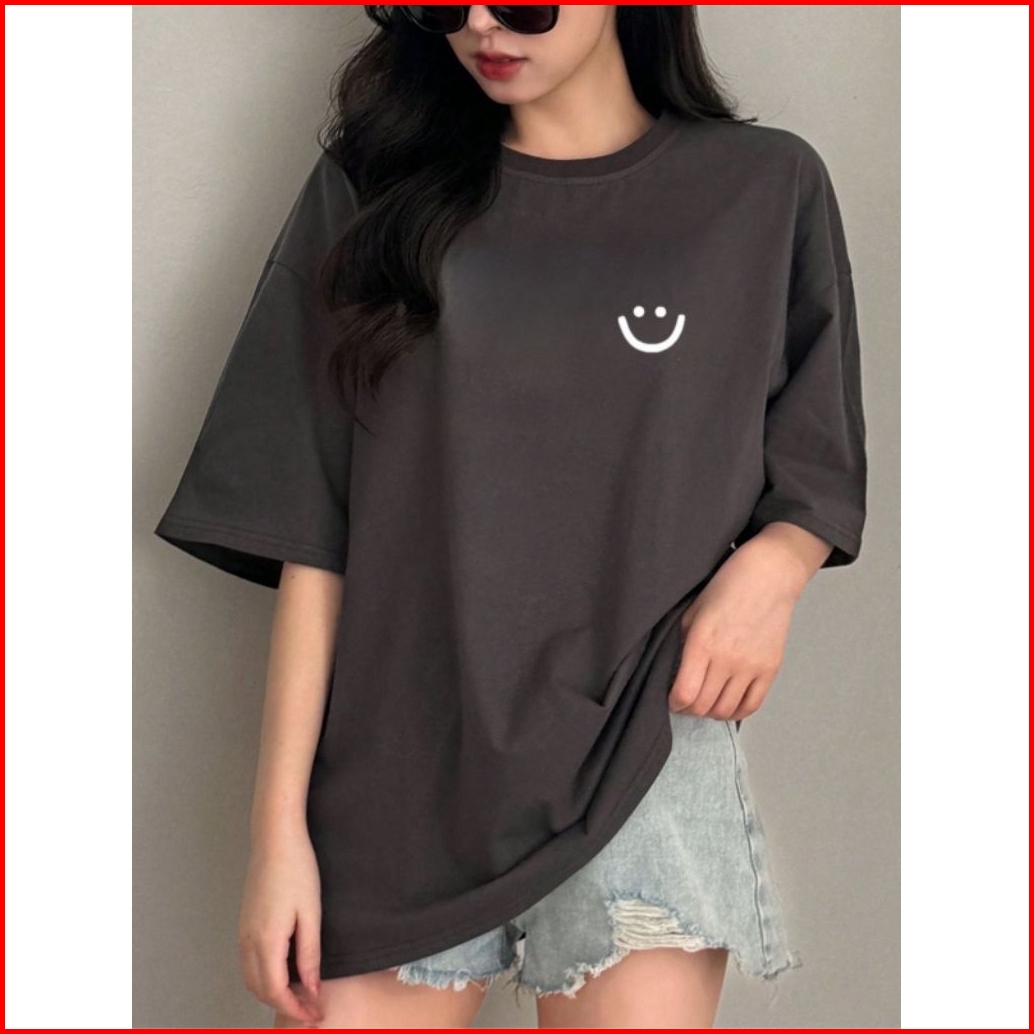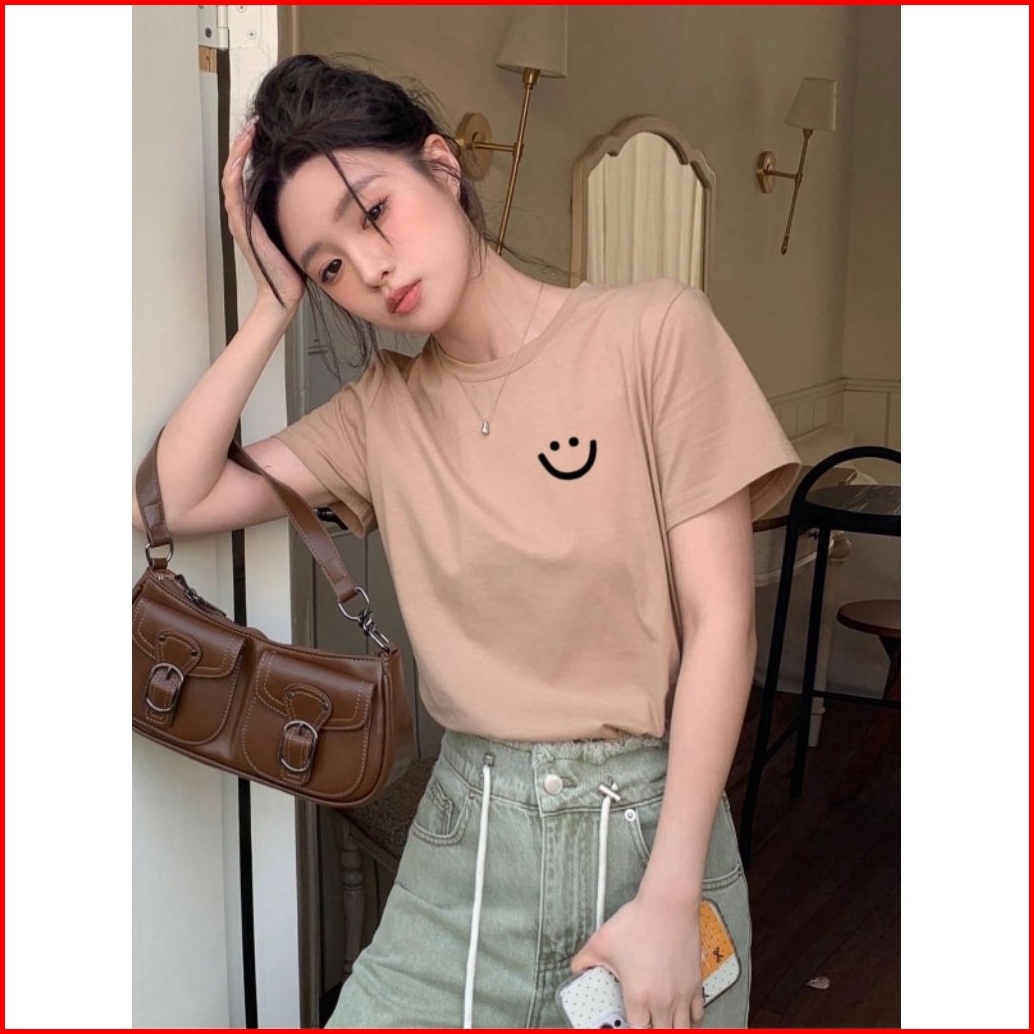Kaos Smile Wanita Kaos Cewek Lengan Pendek Bahan Katun Tebal Kaos Santai Wanita