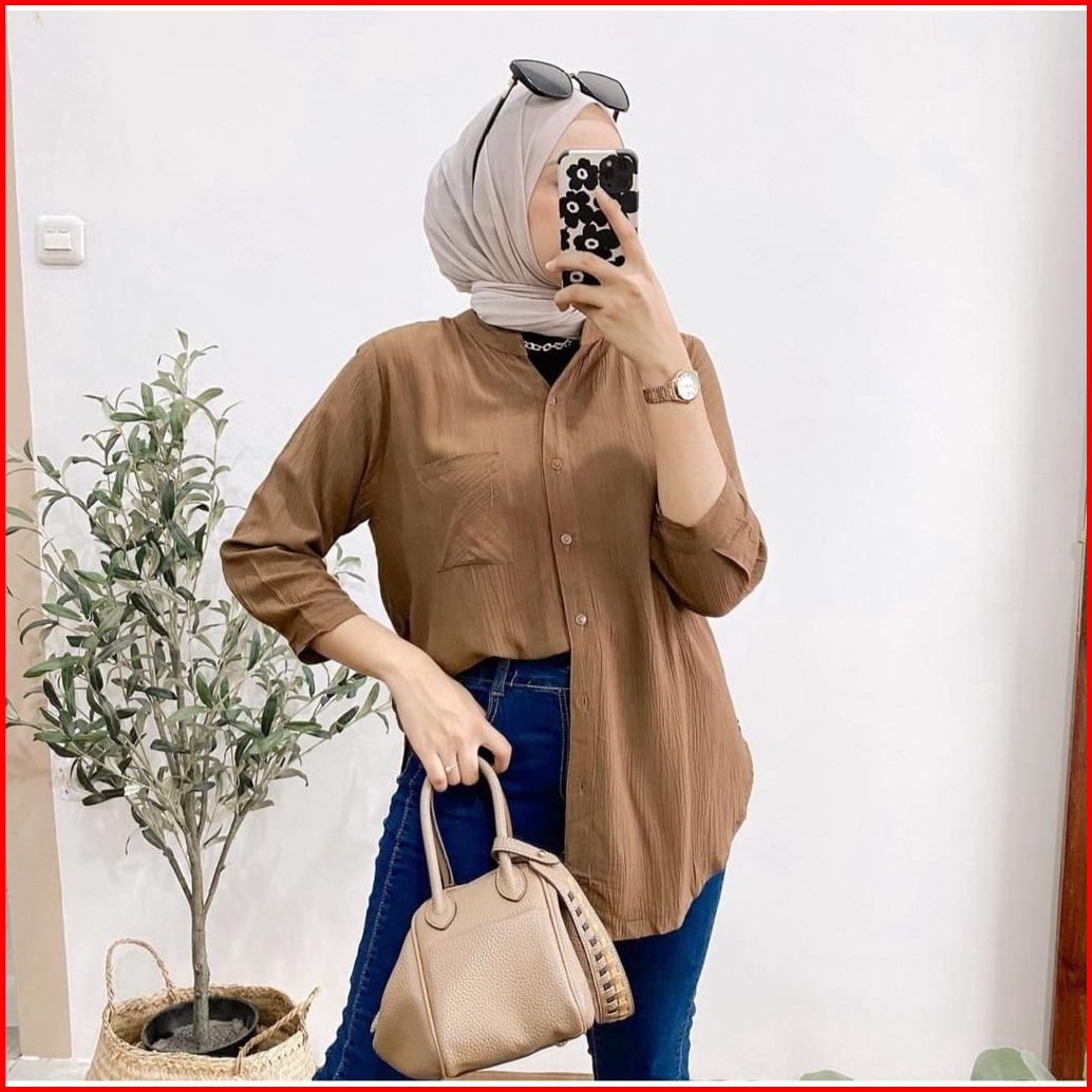 Daily Top Blouse Shakila Kemeja Crincle Pocket Kemeja Wanita Korean Style Terbaru