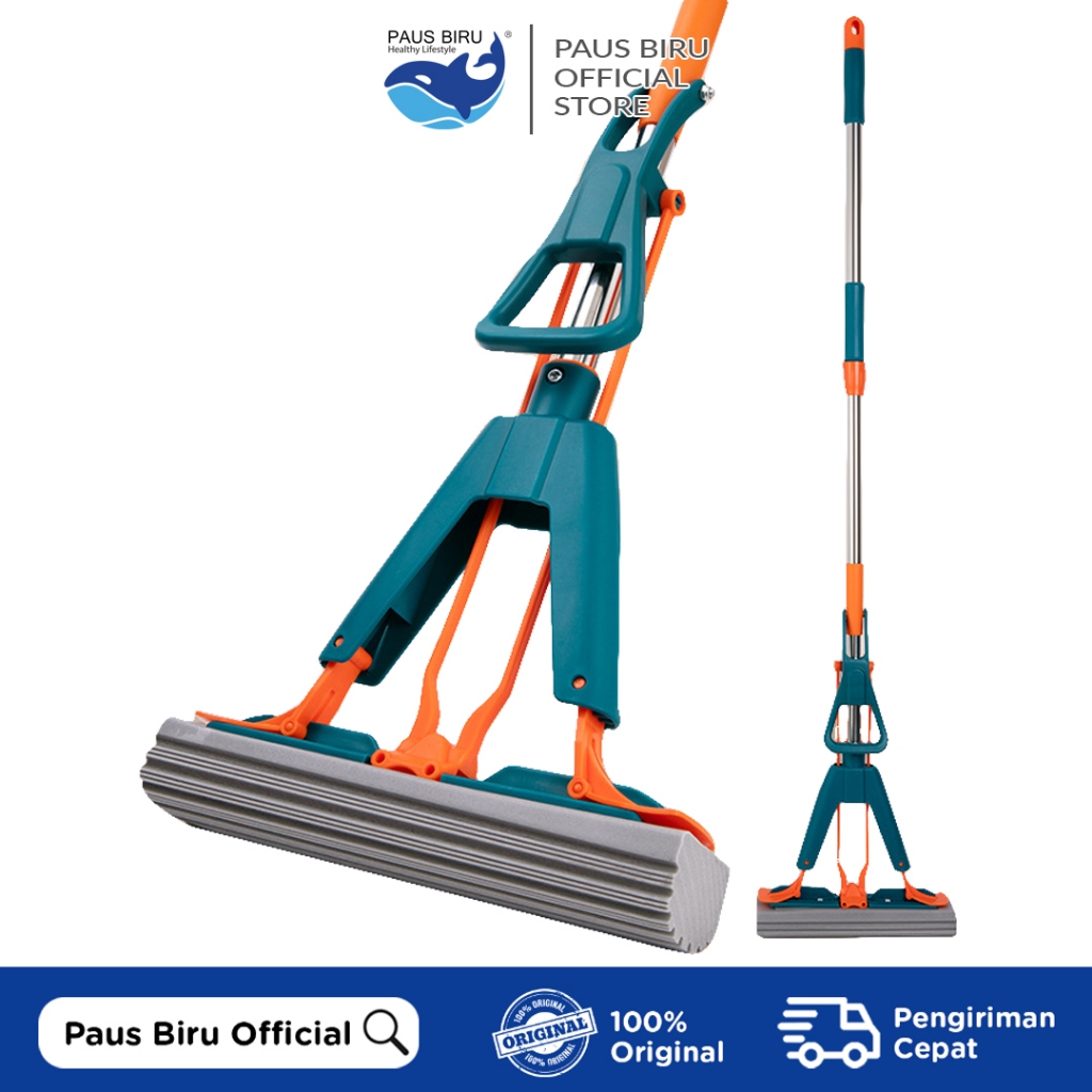 Paus Biru - Alat Pel Lantai Spons Dengan Perasan Lipat Otomatis Pel Spons HM1026