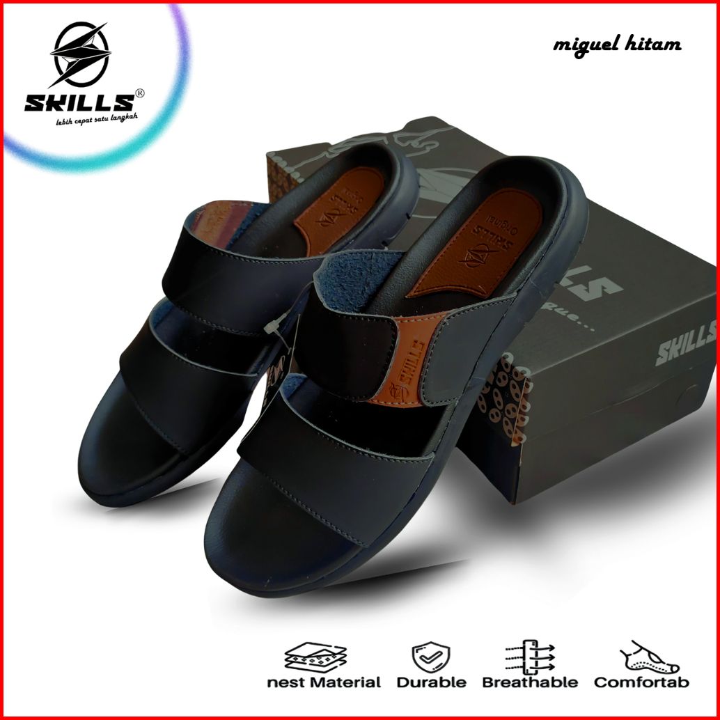 Skills Barqun Miguel - Sandal Pria Casual Kulit Slop Strap Leather Premium