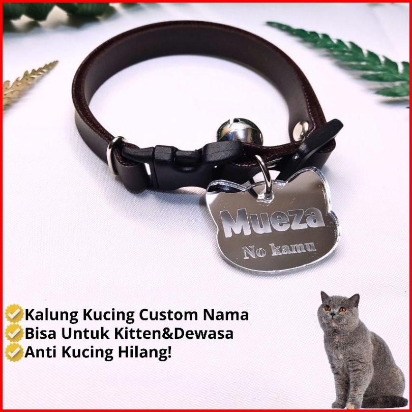 Kalung Kucing Custom Nama Bahan Akrilik Silver Gratis Lonceng Bunyi Anyaring