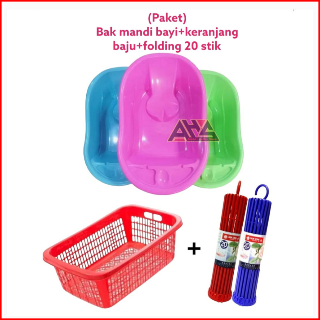 Paket Hemat Bak Mandi Bayi Polin Baby Bathub Keranjang Baju Folding 20 Stik