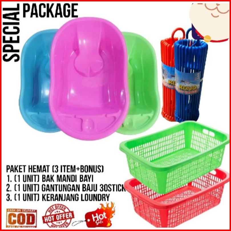 Paket Hemat 3 Produk Bak Mandi Bayi Polin Keranjang Popok Hanger Bulat Folding Putet Murah Kuat Dan Tebal