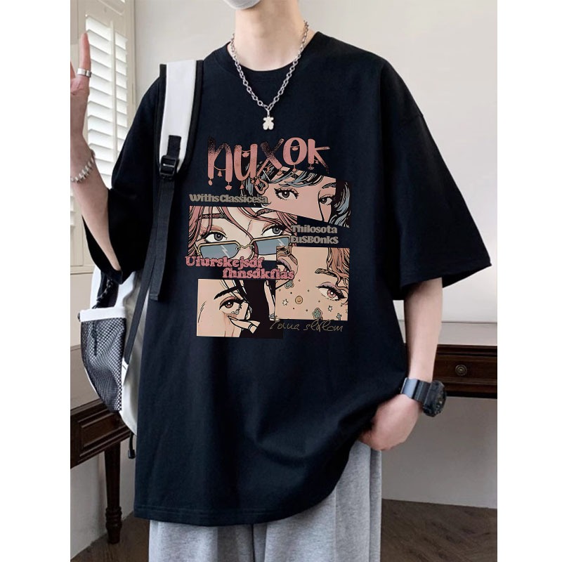 [Mall] AUZY AUXOK Gaya Jepang Anime Pencetakan kaos pria wanita atasan Lengan Pendek T-shirt skena baju oversize t shirt distro