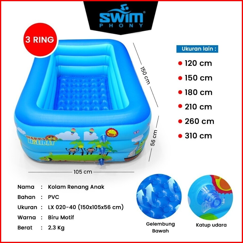 Spreadstores Kolam Renang Anak 150x105x56cm Kolam Renang Tiup Bahan Lentur 3 Ring Swimming Pool For Kids 020-40