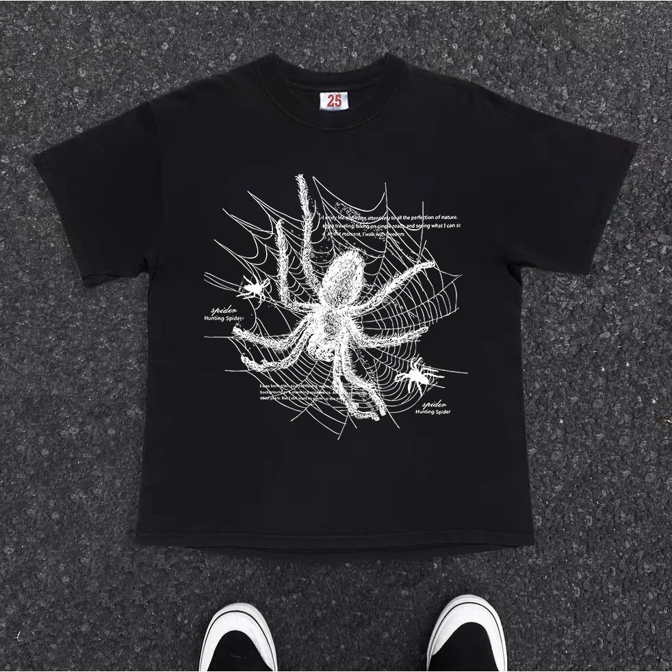 [Mall] AUZY American retro Style T-shirt Oversize Laba-laba menenun jaring| Kaos Wanita Hitam | Kaos pria dan wanita | Street S