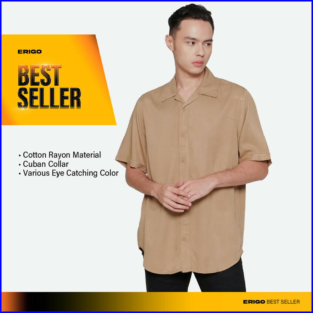 Erigo Short Shirt Aera Khaki - Kemeja Lengan Pendek Rayon Unisex