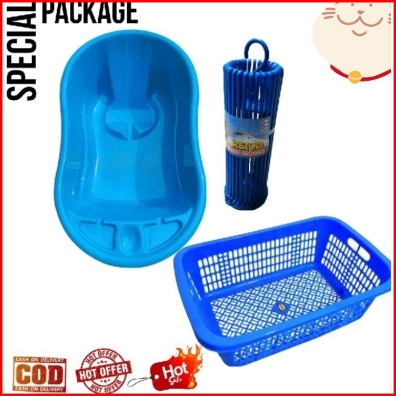1 Set Paket Hemat 3 Produk Bak Mandi Bayi Polin Keranjang Popok Hanger Bulat Gantungan Baju Bayi Murah Dan Hemat