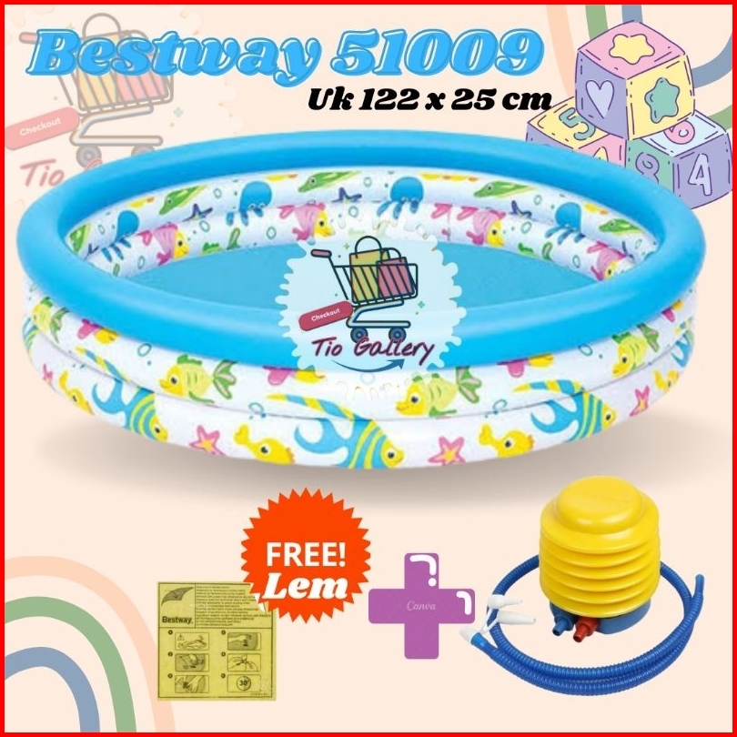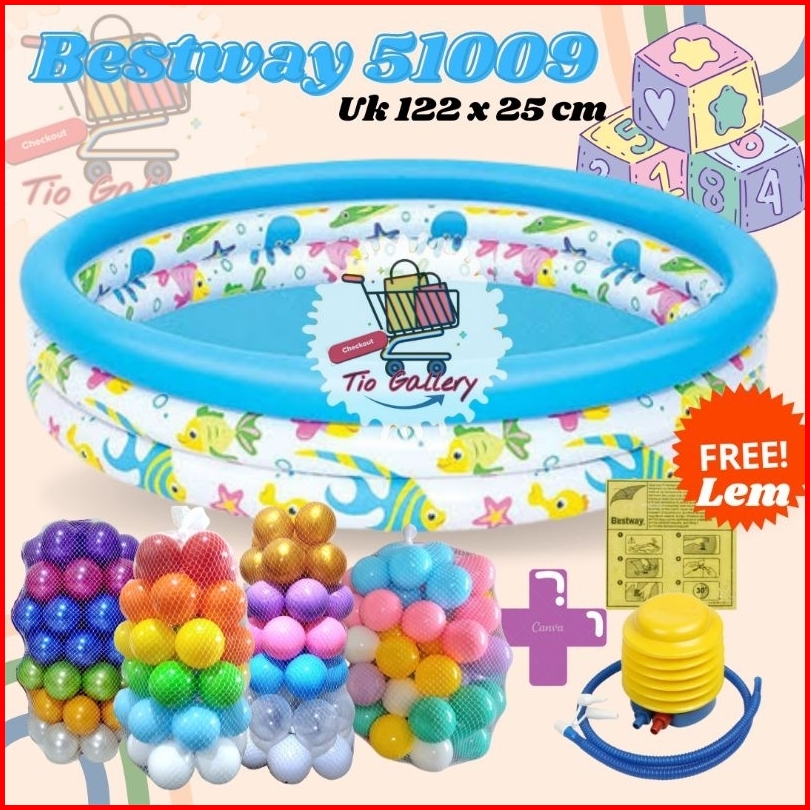 Kolam Renang Anak Dan Bayi Bestway 51009 Uk 122 X 25cm - Paket Kolam Mandi Bola Free Lem