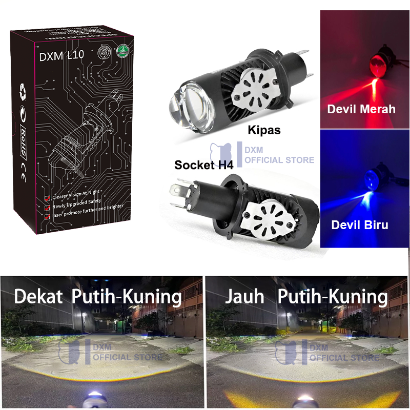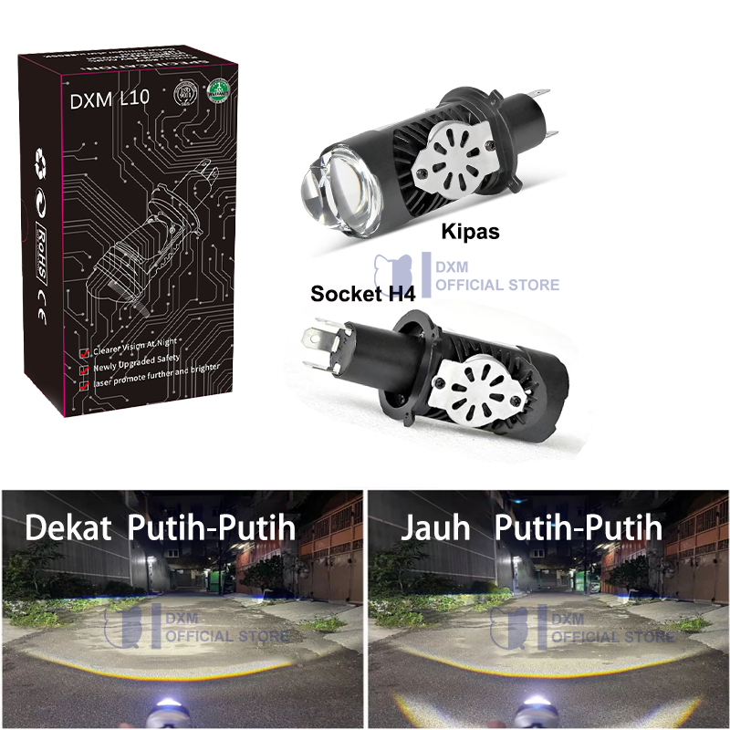 DXM Premium Lampu Utama LED H4 Original L10 High Low DC Kipas Pendingin Full Aluminium 9-100v