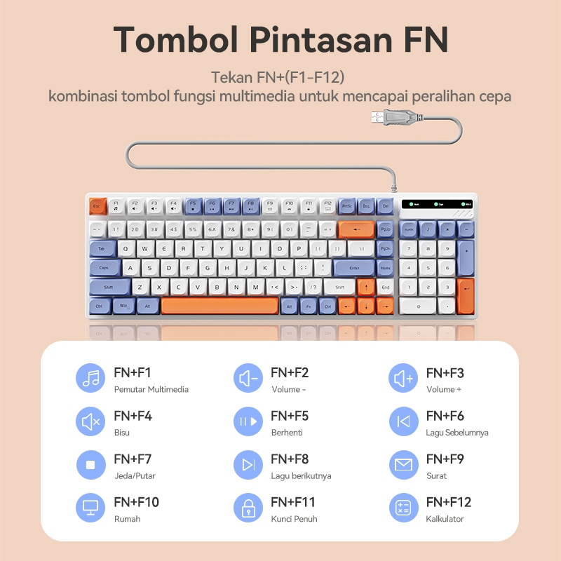 [Mall] OLYPS Keyboard Kabel USB 101 Keys With FN Multimedia Keys Ergonomic Design for PC/Laptop -1.5M Kabel
