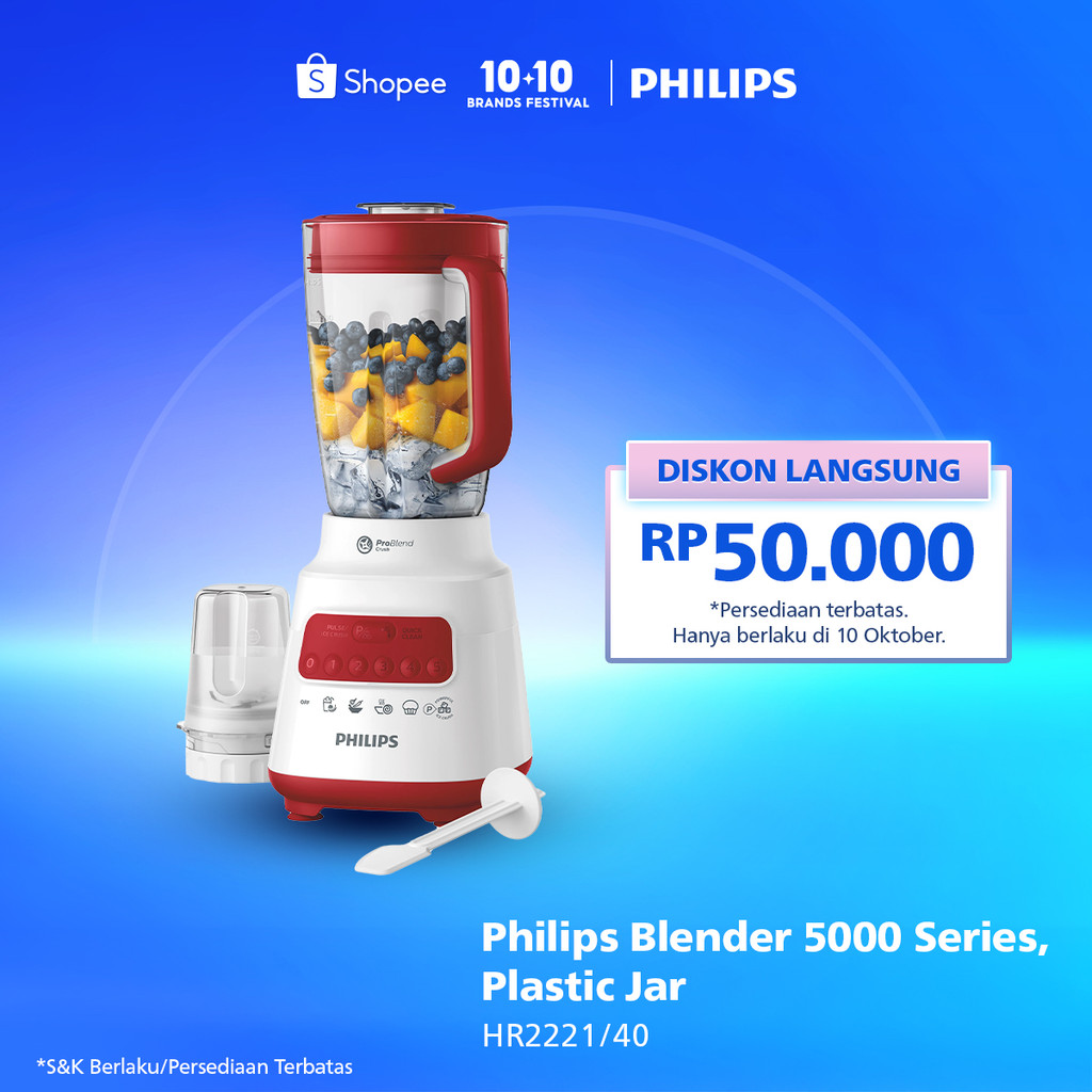 Blender Philips Plastik 2 liter - 5000 Series HR2221/40 - Blender jus - Blender bumbu philips - Dry Mill - Blender Serba