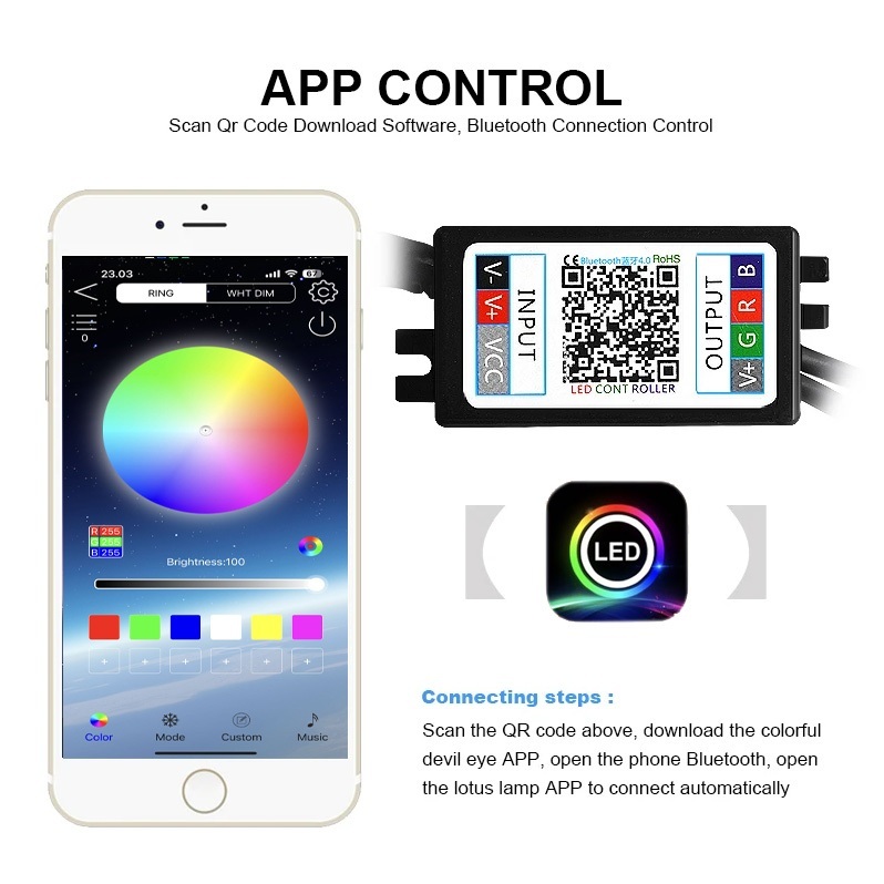 Lampu Demon Eyes Devil Eyes RGB App BILED Projie Aplikasi Android IOS DC12V Motor Mobil Universal Koneksi Hp