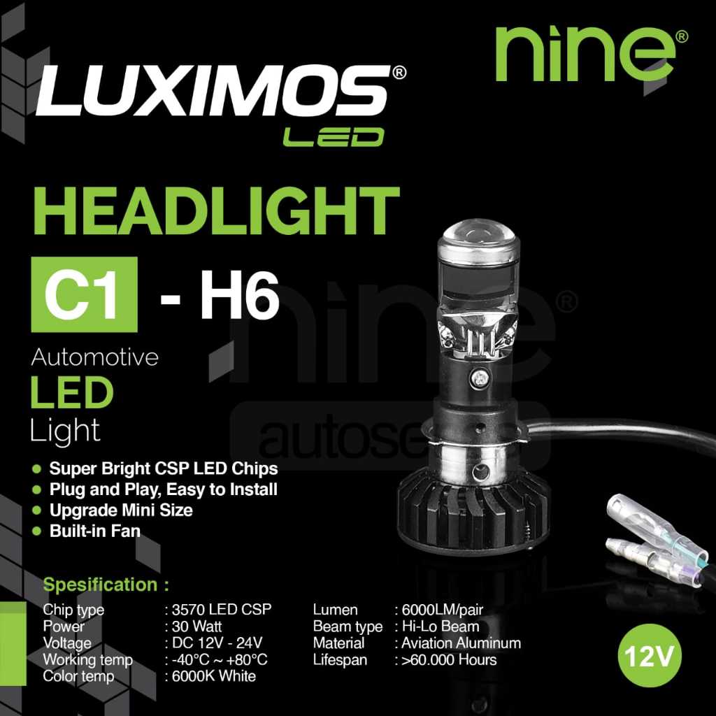 LAMPU UTAMA MOTOR MOBIL H6 H4 NINE LUXIMOS C1 - H6 CHIP CSP 30 WATT 6000 LUMENS PUTIH GARANSI 1 TAHUN