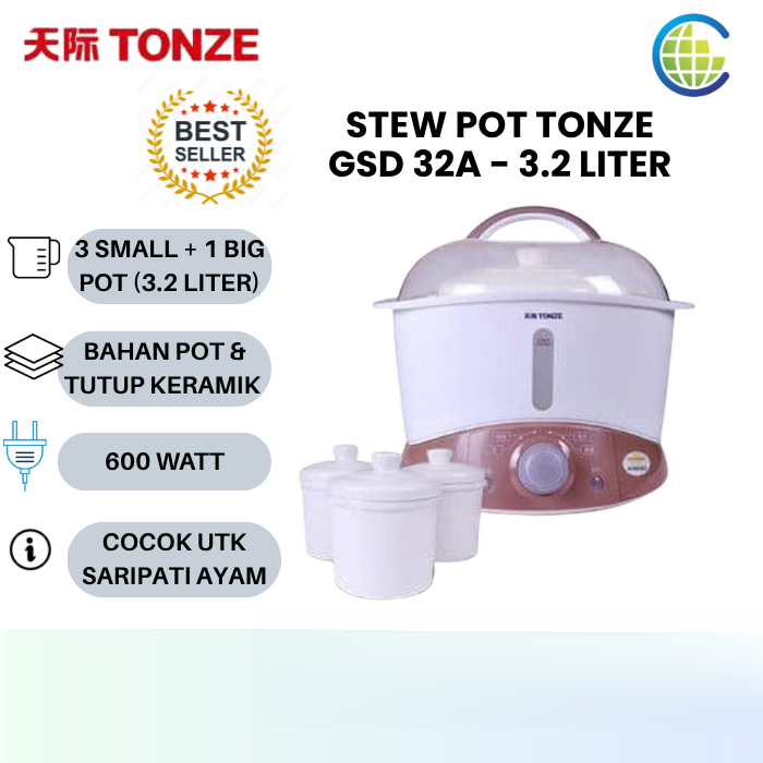 Tonze Stew Pot Slow Cooker Electric GSD 32 A GSD32A GSD 32A 3.2 Liter