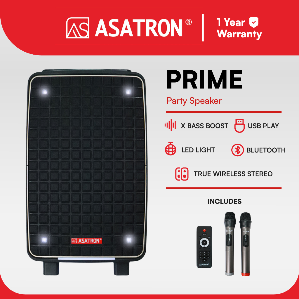 Speaker Asatron Prime 12 Inch Bluetooth Karaoke Party with 2 Wireless Mic TWS