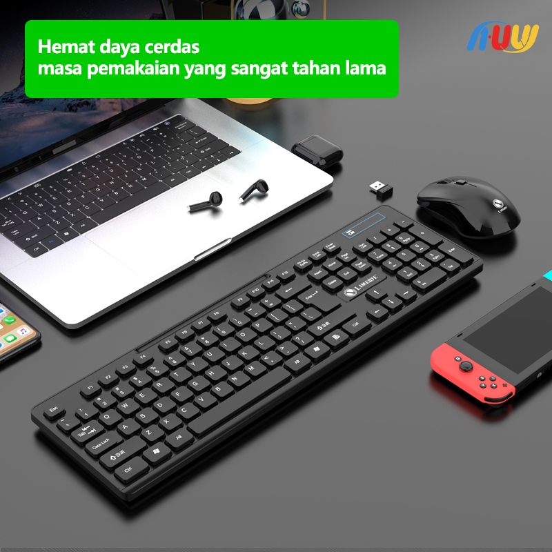 [Mall] HUW PC SHOP Ws736 W100 Portable Wireless Set Combo Keyboard Mouse Senyap cocok untuk Kantor, Rumah, Gaming, Mouse kantor yang senyap