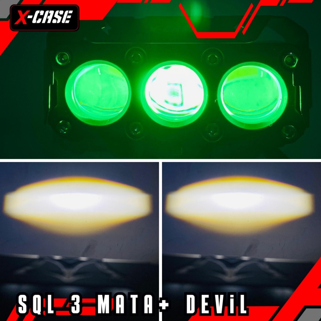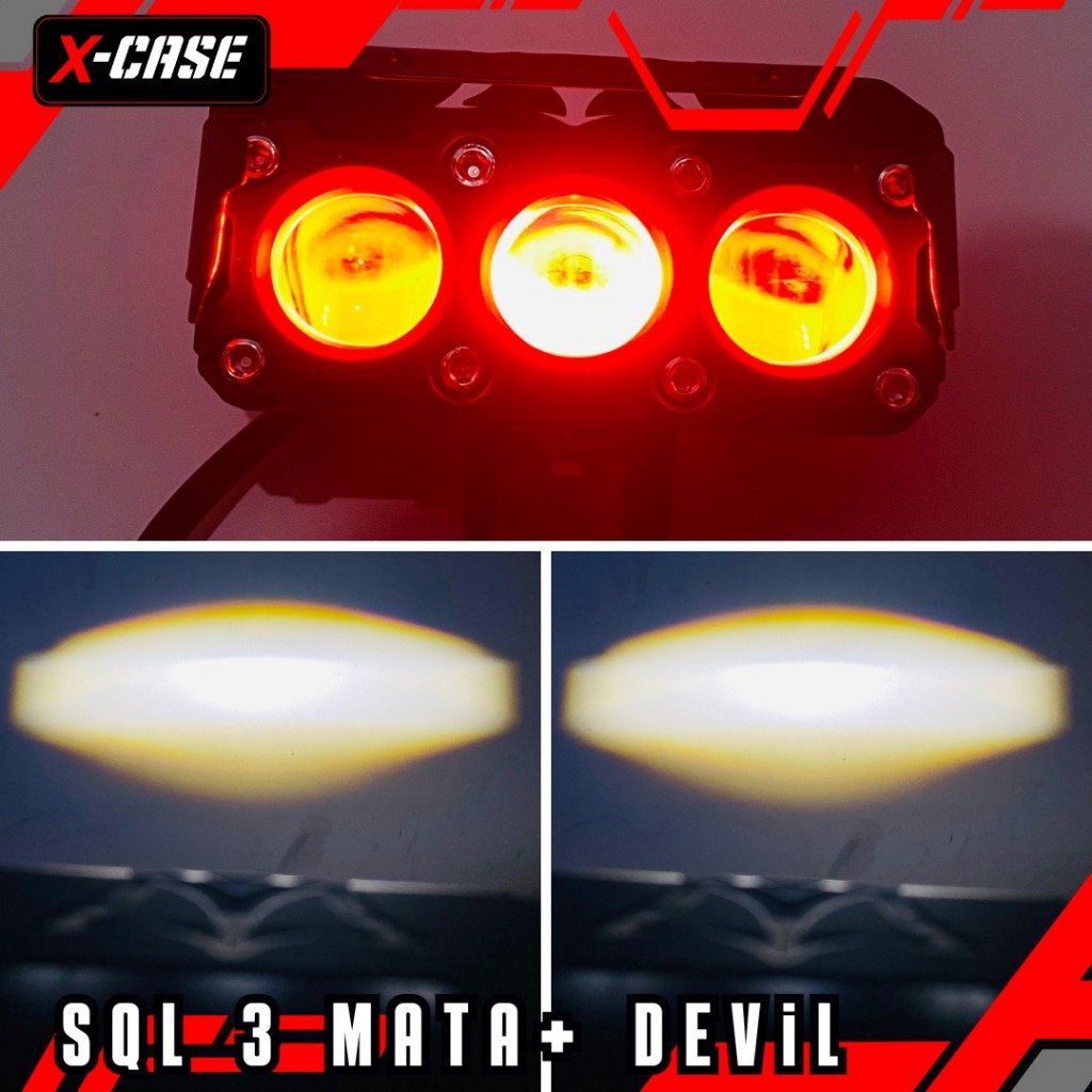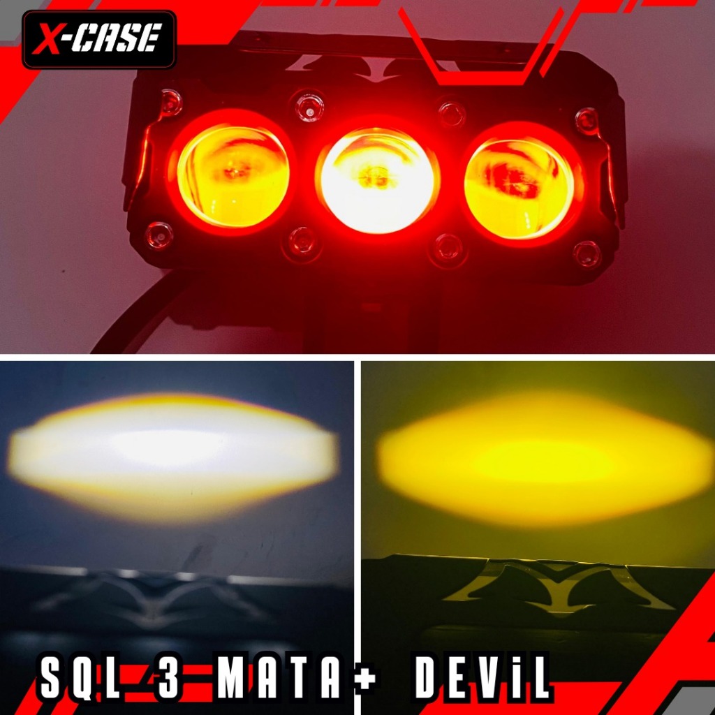 X-CASE LAMPU TEMBAK DEVIL EYE 8030 SQL 3 MATA PUTIH KUNING DAN PUTIH PUTIH 45 WATT