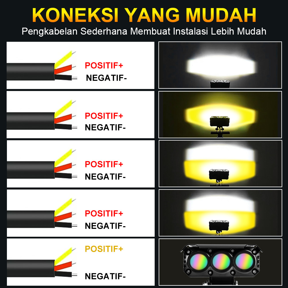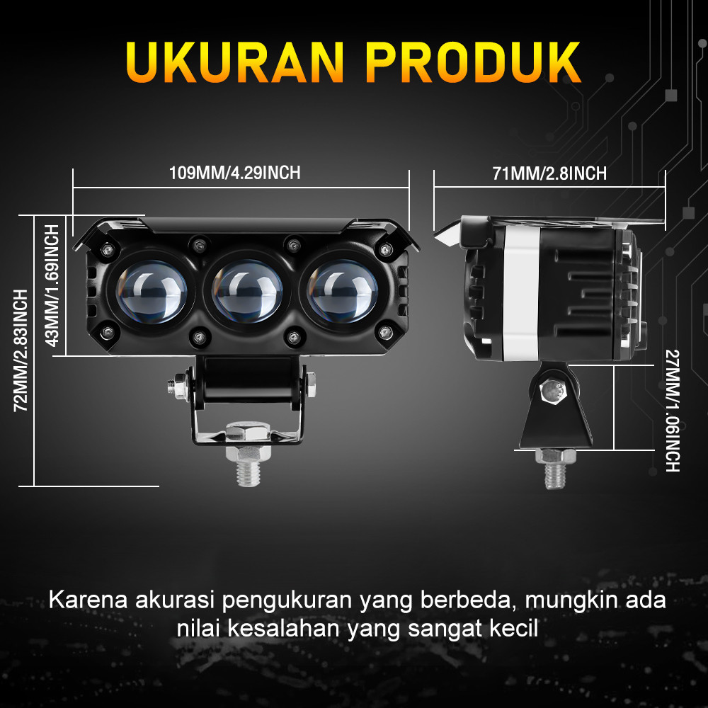 Lampu Tembak Laser SQL 3 Mata Mini Devil Eye Alumunium Premium Senja Foglamp 7 Mode RGB 300 Watt 30000LM IP68 Waterproof