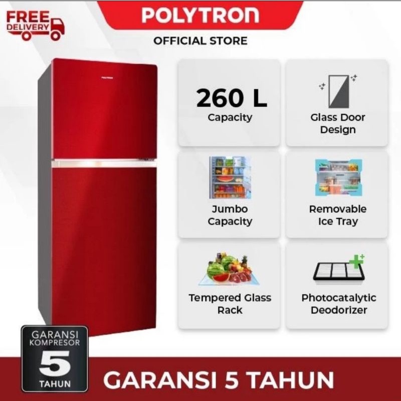[Mall] KULKAS 2 PINTU POLYTRON BELLEZA JUMBO 260 LITER PRW 29 MNX LEMARI ES 2 PINTU TERMURAH GRATIS ONGKIR