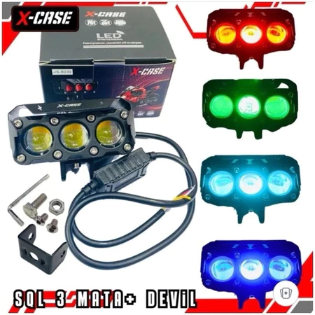 LAMPU TEMBAK SOROT LASER X-Case 3 MATA PLUS KIPAS 45WATT DEVIL BIRU MERAH ICE BLUE & HIJAU JAUH DEKAT KUNING PUTIH.....