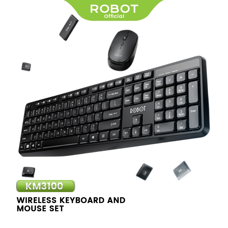 [Mall] ROBOT Portable Wireless Set Combo Keyboard and Mouse KM3100 Original Garansi 1 Tahun