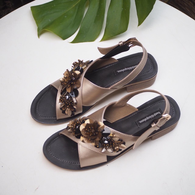 bembiibloopshoes Best seller} READY STOCK Emma Sandal Twotone (gold black)