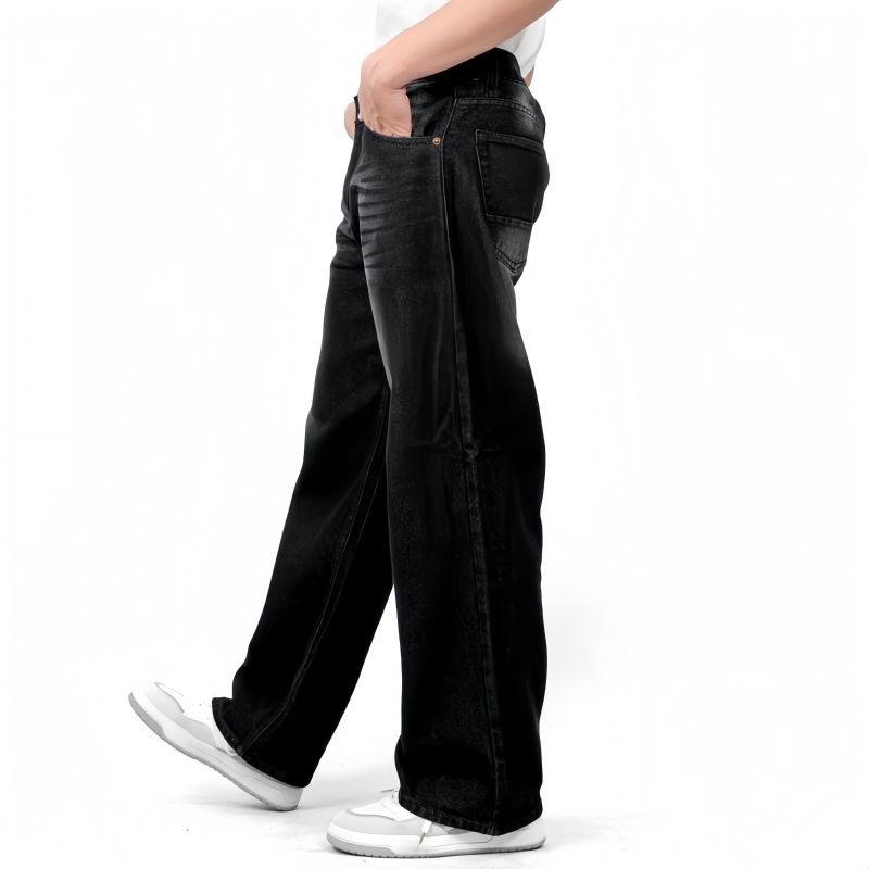 Ethena - Celana Jeans Wisker Pria Unisex Wide Leg Lebar Gombrong Skena Blacki