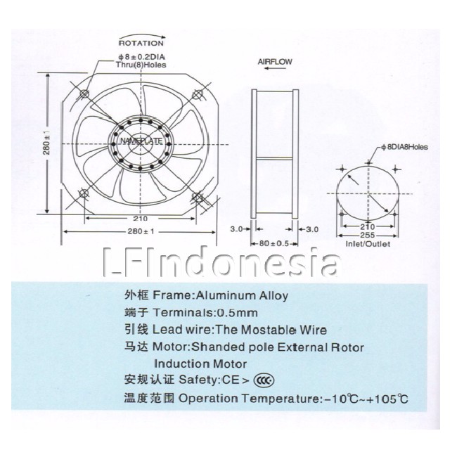 Kipas Cooling Exhaust Fan Panel LBM 220V (Tahan panas), uk. 28 cm