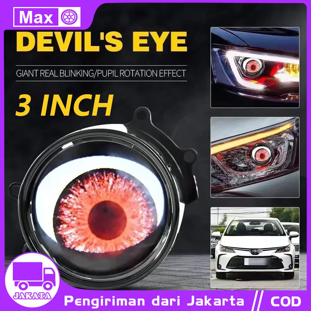 Lampu Depan Mobil LED Dinamis 3 inch Mobil Mata Iblis Lampu Depan Lensa Hias LED 12V