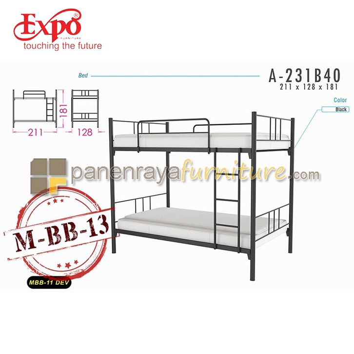 Ranjang Susun Besi Tanpa Kasur Expo MBB 13 Hitam 211x128x181 Cukup Untuk 4 Orang