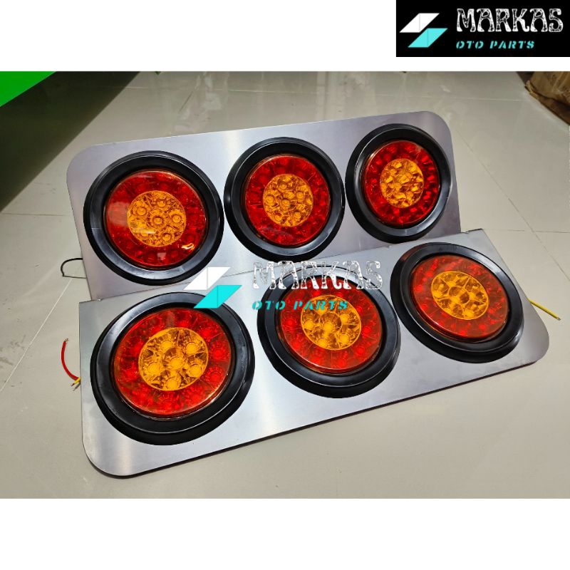 Sepasang Lampu Led Stop Lamp Truck 12volt - 24volt Model 402 / 302 Stainless Merah Kuning Lampu Rem Belakang Truk Varias