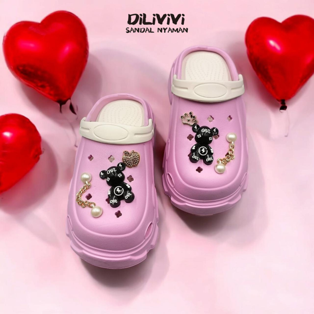 DILIVIVI 832EF | Sandal Baim Anak Perempuan Wedges Jibbitz Bear Size 24-35